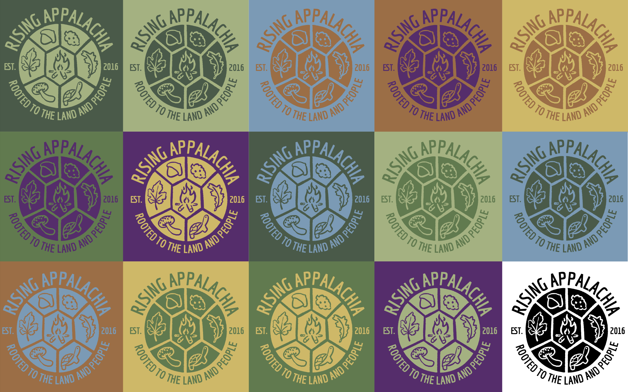 We used digital illustration and hand-drawn elements to create the organic feel of the logo and brand assets. The final designs will be used in future branding for Rising Appalachia, including the organization’s website, merchandise, and advertising efforts.