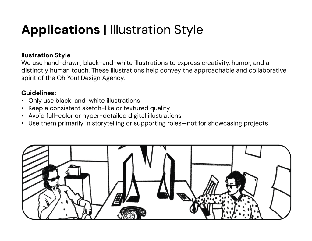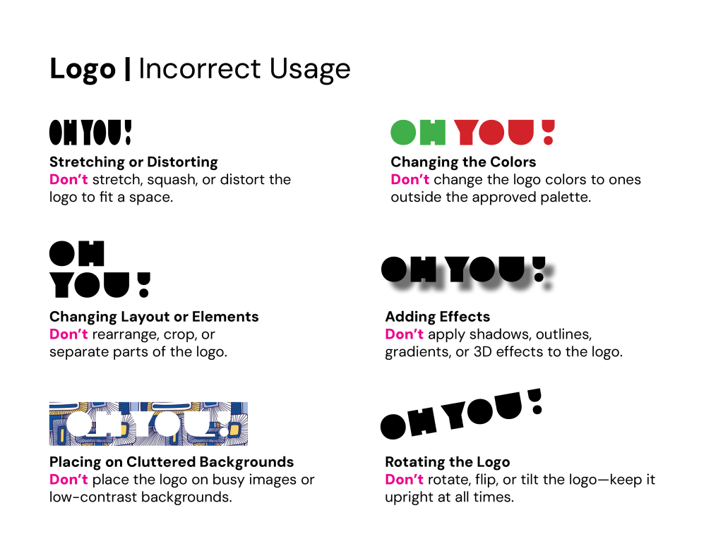 This project involved designing a complete brand book for the Oh You! Design Agency, a university-affiliated creative agency based in Athens, Ohio. The brand book defines the agency’s visual identity, tone of voice, mission, and core design principles—serving as a foundational resource for current and future collaborators.